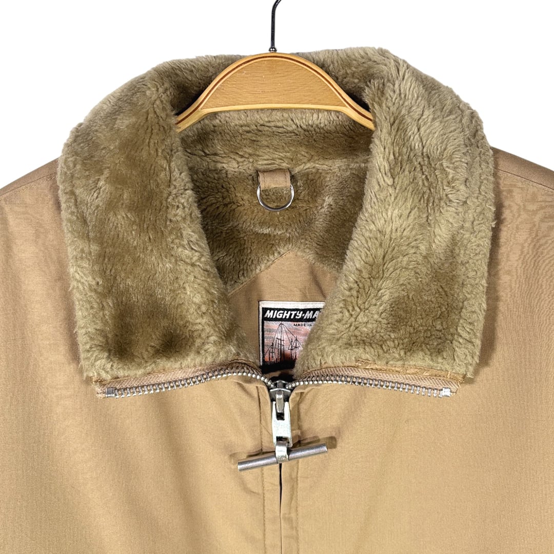 1970年代製、マイティーマックのボアジャケットです。フロントジップは当ブランドのアイコンでもあるTバーが残るダブルジップ。