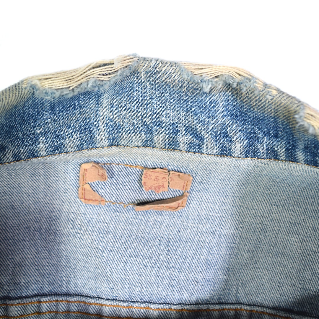 画像のように、襟の擦れ、キズ、小穴などございます。